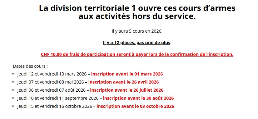 Cours d’armes 2026 de la div ter 1 pour les participants des sociétés militaires
